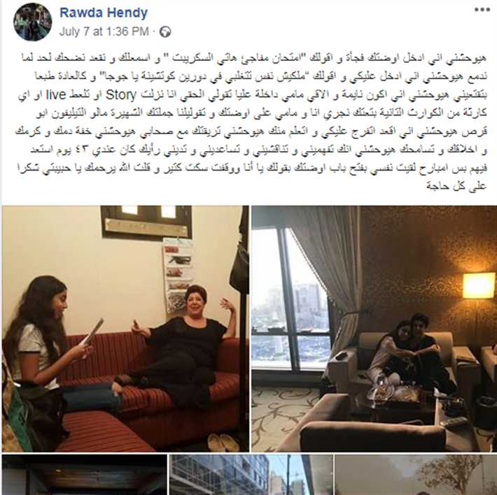 نشرت روضة هندي حفيدة الفنانة رجاء الجداوي رسالة مؤثرة عبر حسابها على فيس بوك وشاركت صور خاصة لها مع جدتها وكتبت: "هيوحشني أني أدخل أوضتك فجأة وأقولك "امتحان مفاجئ هاتي السكريبت " و أسمعلك ونقعد نضحك لحد لما ندمع هيوحشني أني أدخل عليكي وأقولك "ملكيش نفس تتغلبي في دورين كوتشينة يا جوجا" و كالعادة طبعا بتقطعيني".