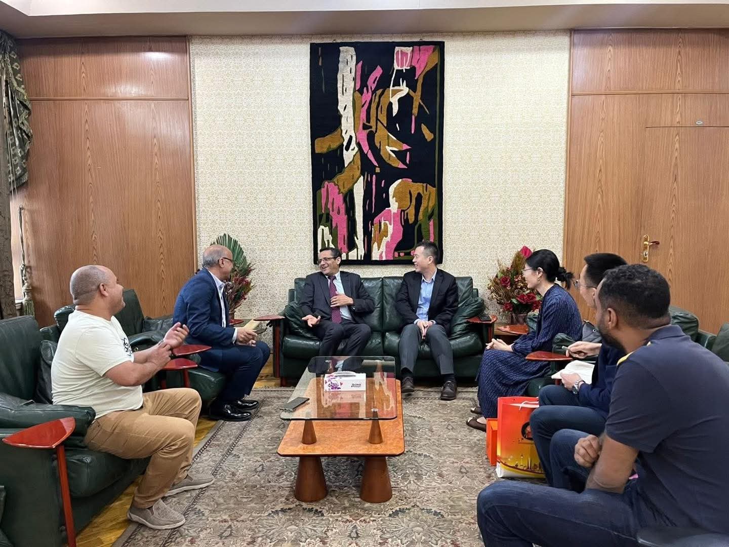 استقبلت نقابة الصحفيين، اليوم الأحد، وفدًا من السفارة الصينية بالقاهرة برئاسة الوزير المفوض جو شاوجونج، وبمشاركة مدير عام الإعلام دو لينج والملحق الإعلامي لي يشانج، حيث التقى الوفد نقيب الصحفيين خالد البلشي، ووكيلي النقابة حسين الزناتي ومحمود كامل، والكاتب الصحفي د. أحمد فارس.